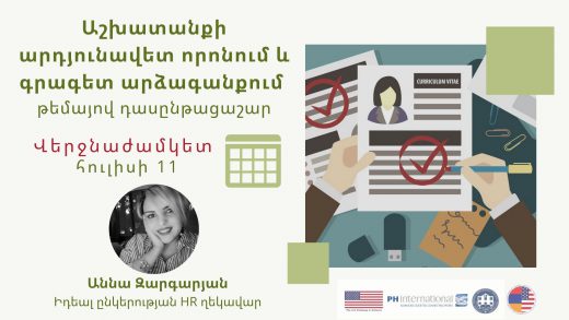- արդյունավետ ներկայանալ գործատուին․ կազմել ռեզյումե, ինքնաներկայացման ելույթ, օնլայն պրոֆիլ,
