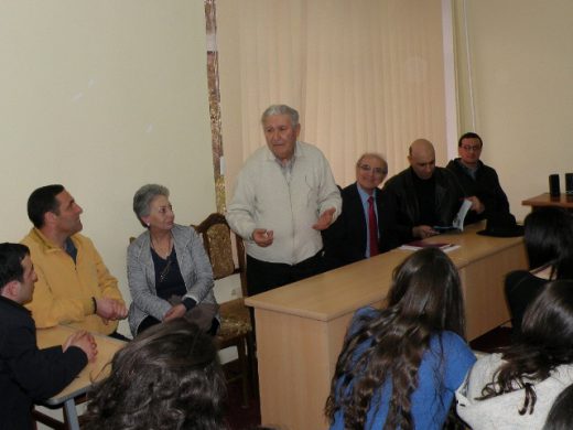Պարոն Ս.Առաքելյանը ընդհանուր գծերով հյուրերին ներկայացրեց ուսանողներին՝ այցելության համար նրանց հայտնելով շնորհակալություն, համոզմունք արտահայտելով, որ նրանց հետ հանդիպումը ուսանողների համար կլինի ամենալավ դասը, որ վերջին ամիսներին նրանք կարող էին ստանալ: Այնուհետև Ս. Ա. Առաքելյանը խոսքը փոխանցեց Հումանիտար գիտությունների ֆակուլտետի դեկան, պ.գ.դ., պրոֆեսոր Աշոտ Ներսիսյանին, ով եղել է Լիբանանում և անձնապես ծանոթ է այն մեծ գործունեությանը, որ իրականացվել է «Խոսնակ» թերթի միջոցով և պարոն Մարտիրոսյանի գլխավորությամբ: