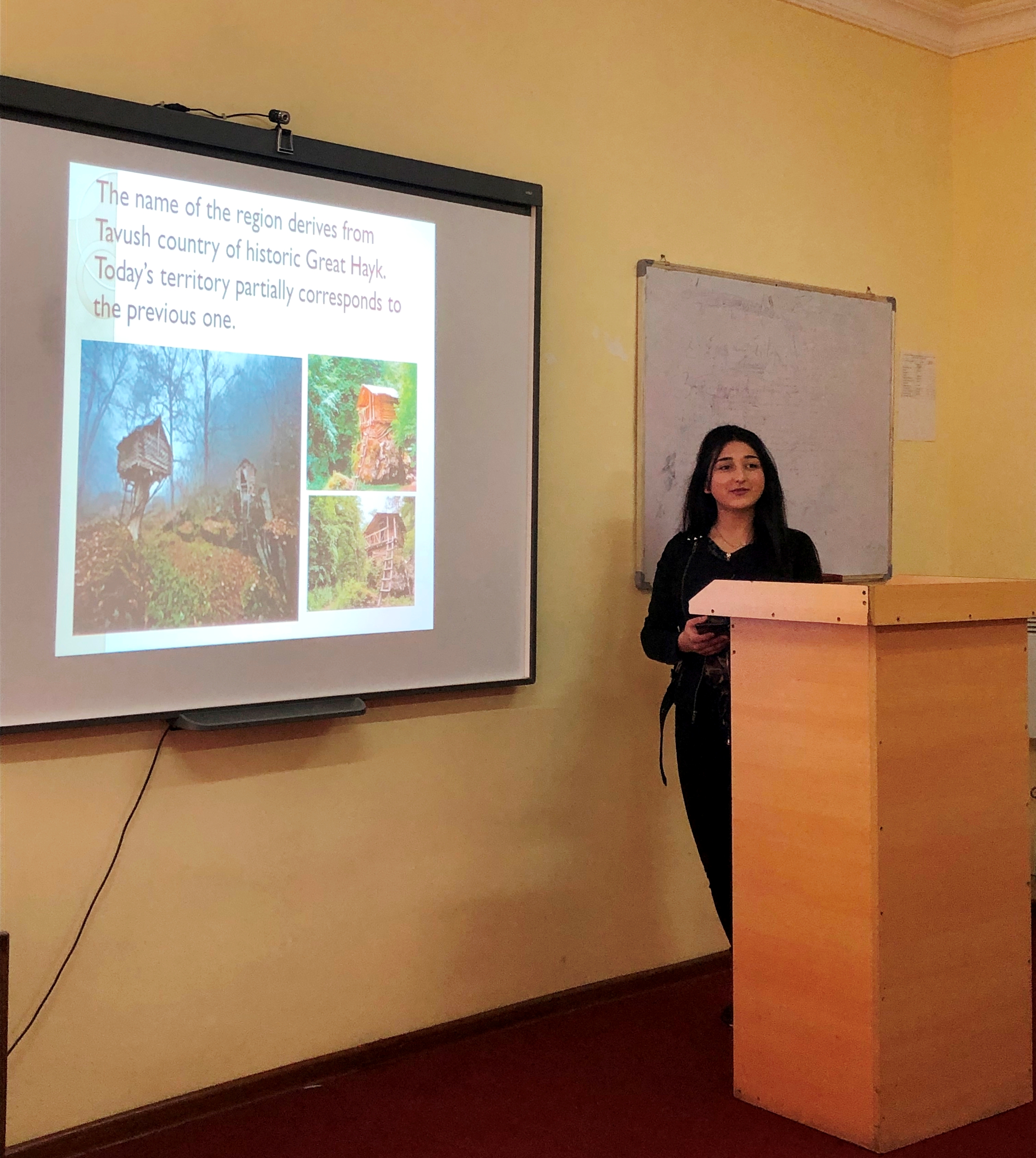On April 5th, 2019, first-year students of “Tourism” specialty, Part-time training system of Ijevan Branch of “Yerevan State University” Foundation delivered reports in English on “Places of Interest in Armenia”.