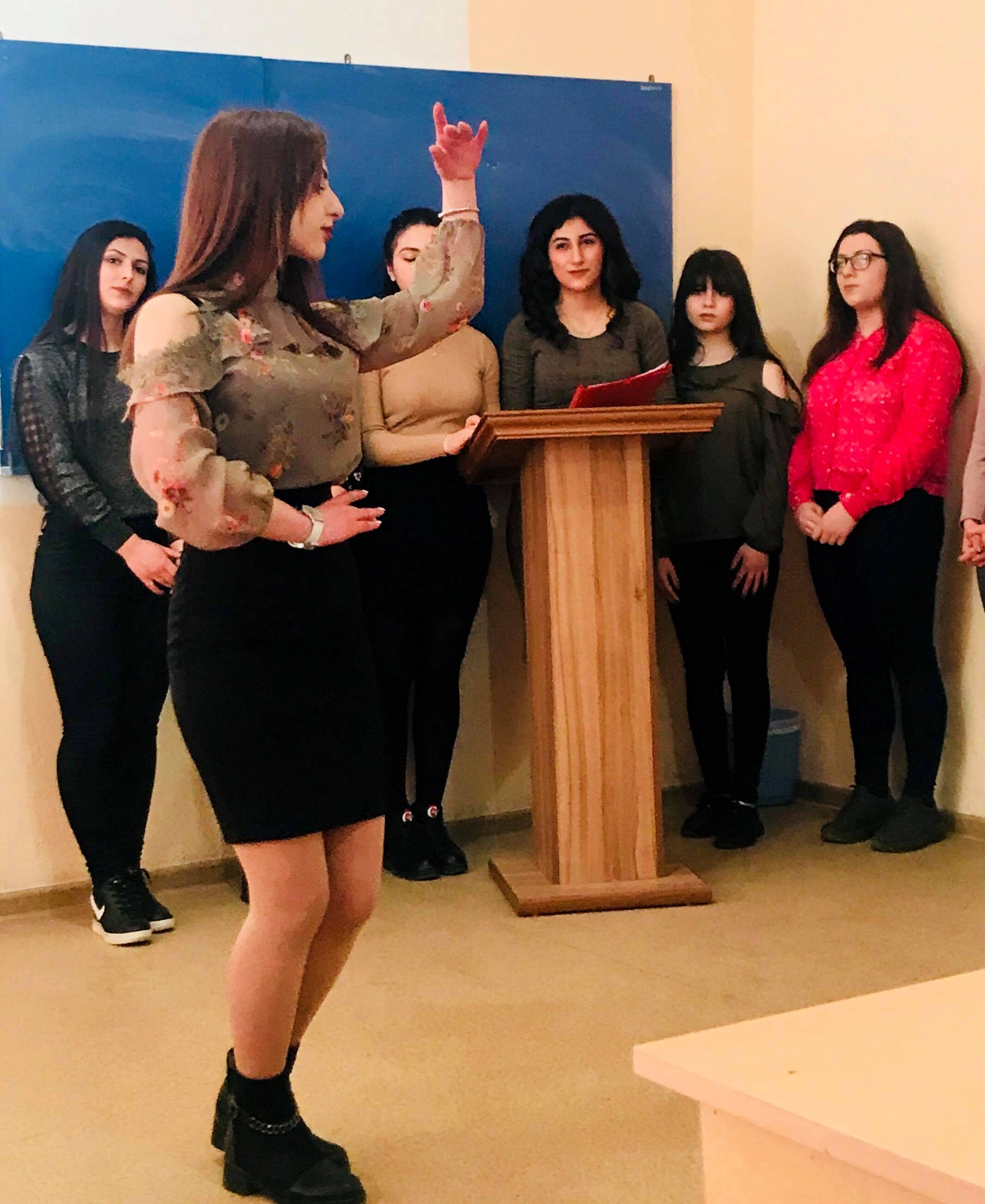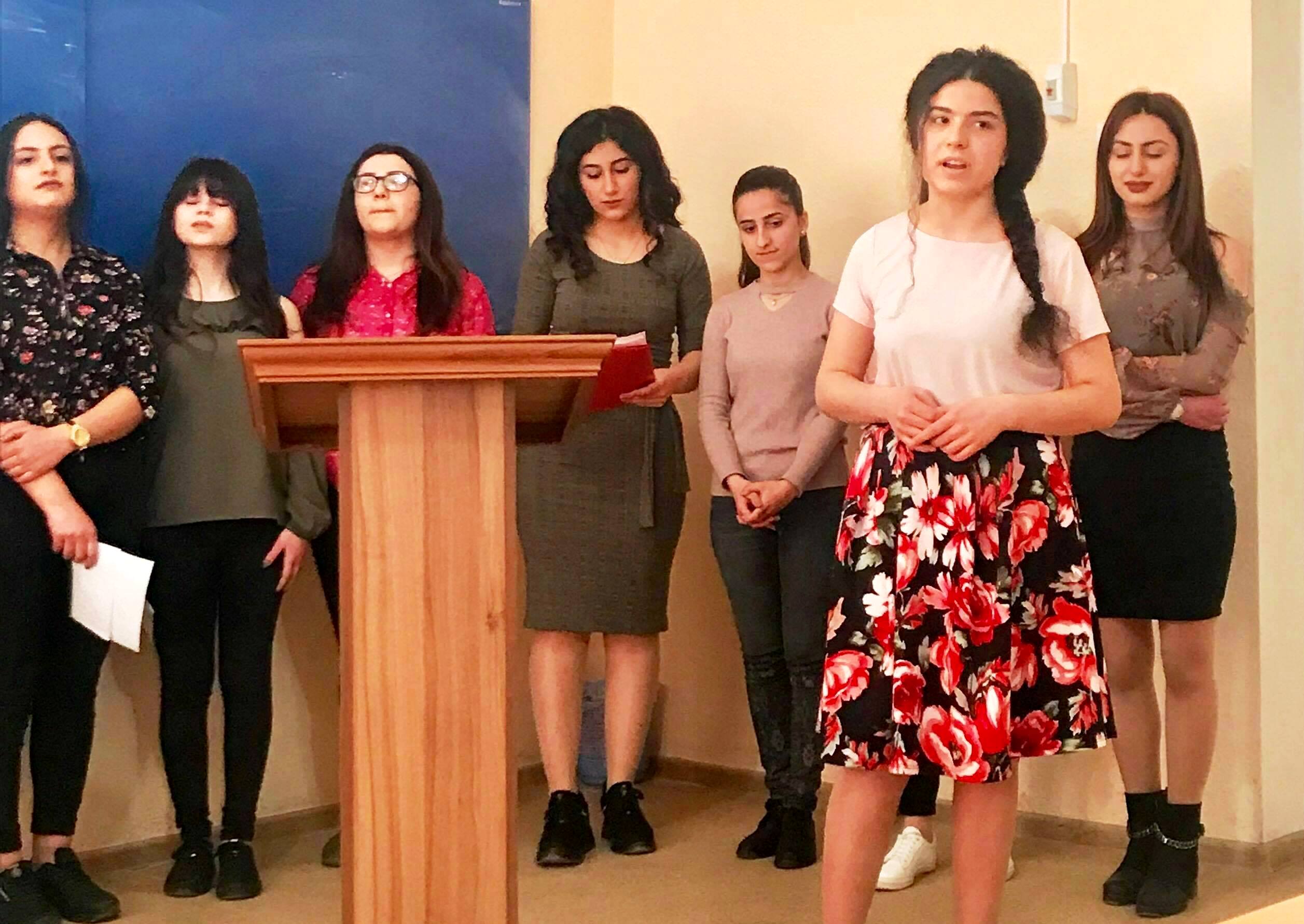 В конце мероприятия студенты подарили преподавателям цветы и поздравили их с праздником. Затем исполняющая обязанности декана факультета гуманитарных наук К. Погосян и исполняющая обязанности заведующего кафедрой английского языка и литературы К. Арутюнян выступили с речью и выразили благодарность студентам, пожелали им быть такими же энергичными и в учебе.
